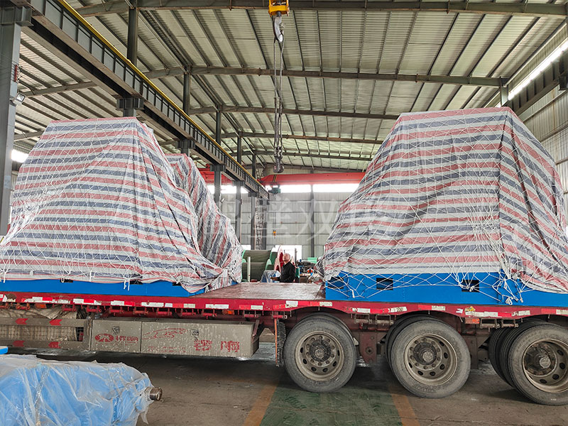 鶴壁雙民在發(fā)往歐洲的井架,裝車完成之后,又開始了鑿井絞車的裝車工作。