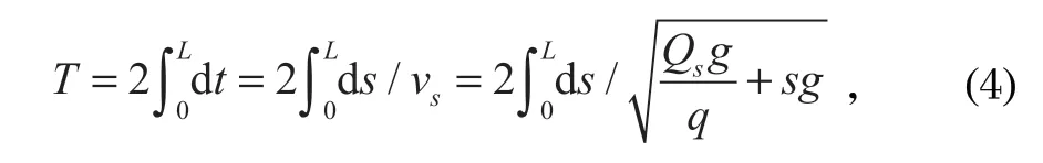振動波周期法是依據振動波在鋼絲繩上的傳遞速度和鋼絲繩張力的關系,通過速度傳感器測量鋼絲繩振動波周期,得到傳遞速度,進而計算出鋼絲繩張力。
