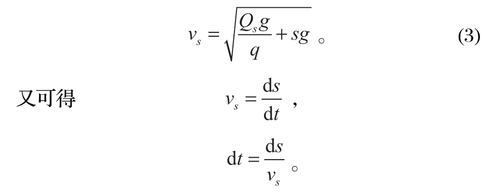 在井口附近位置,對罐道繩某一點施加一垂直沖擊力,使罐道繩產生橫向振動。振動波在鋼絲繩上的傳遞速度與鋼絲繩所受張力的關系如下: